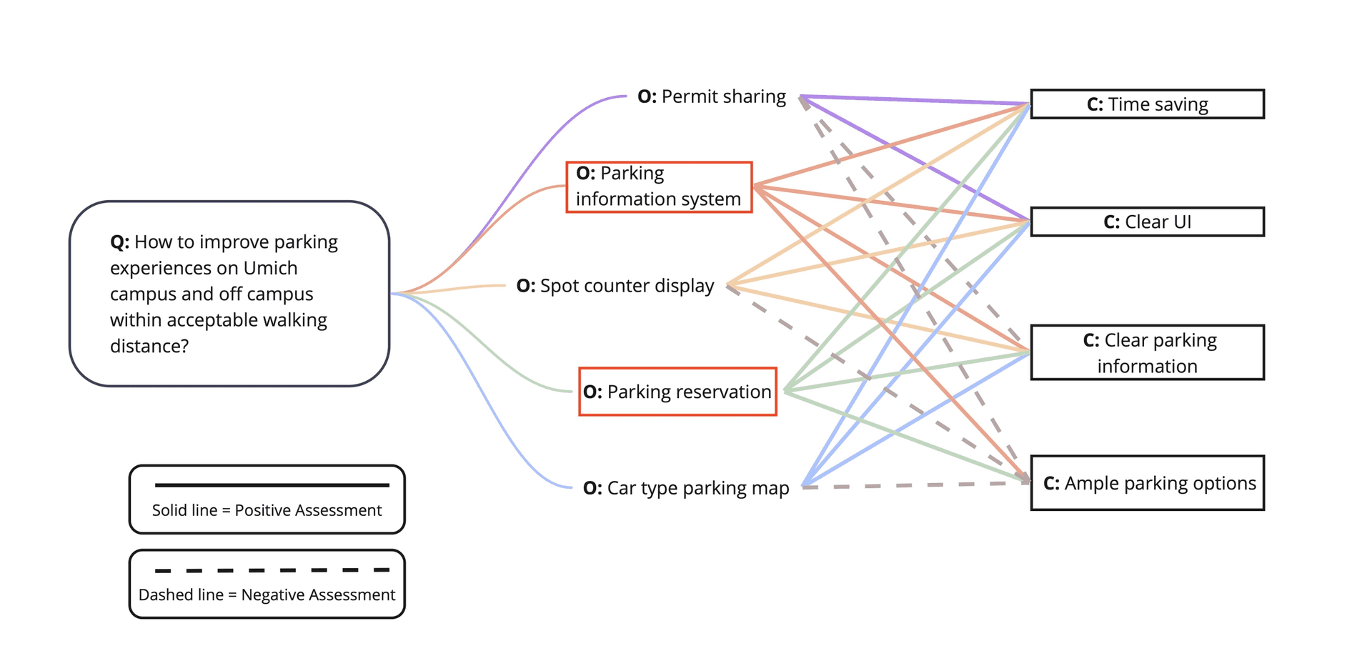 The first OOC diagram narrowed down solutions based on whether the solutions improve user's overall parking experiences.