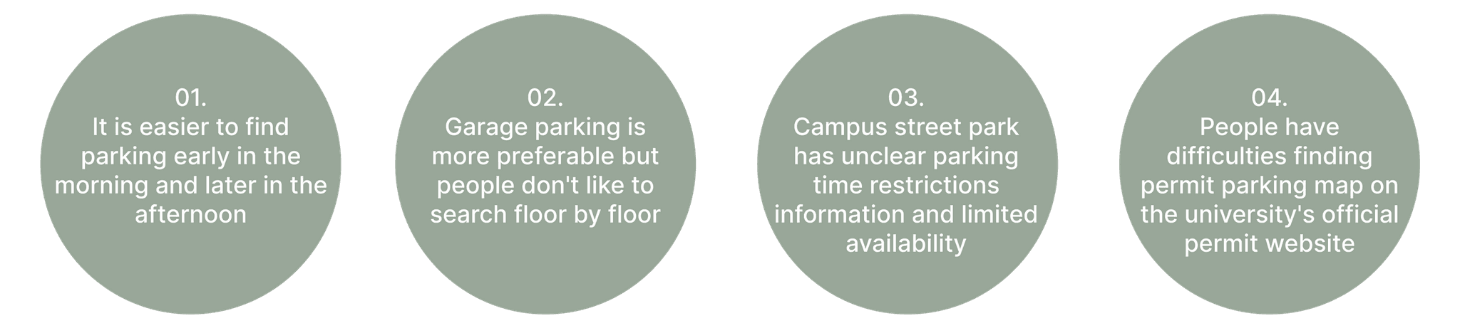 Overall, findings from the interviews suggested a need for more clear and comprehensive parking information that help users find parking on the University of Michigan campus quickly.