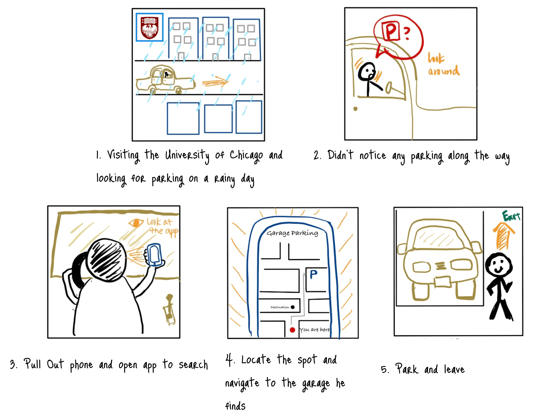 I created a storyboard to capture user's behaviors and to understand the context or environment where the product is used and the potential constraints faced by the users.