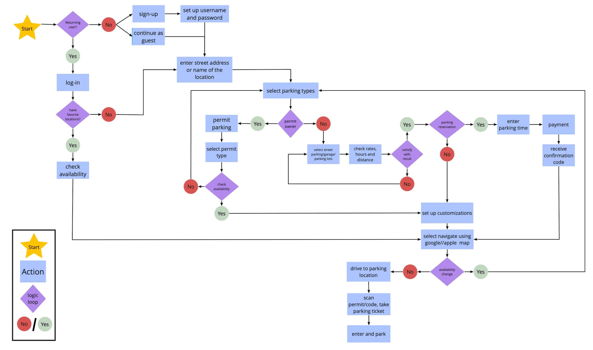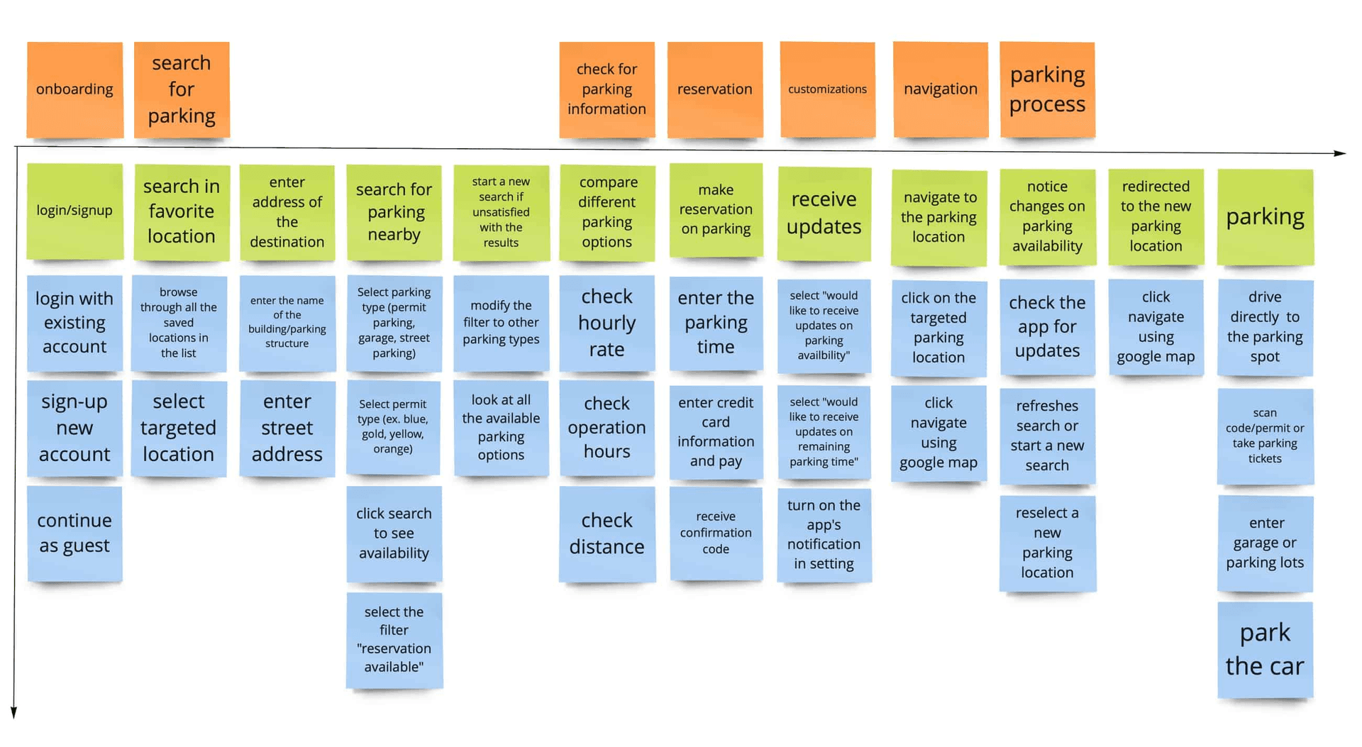 As discovered in the interviews, users need clear parking information to have better parking experiences. To address such needs, **my design strongly emphasized on providing detail parking information and making sure the information they need are easily accessible to users during important interactions. **Information improves the "during" parking experiences because it allows users to make quick decision on parking even when they are in a rush.